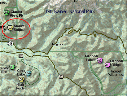 Mount Beljica, you are greeted with outstanding vistas of Mt Rainier,