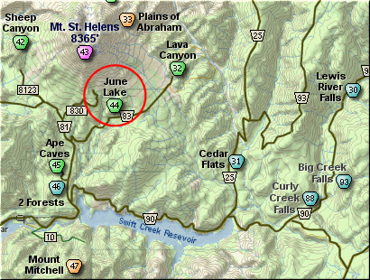 you get to Cougar. Continue east through Cougar on the Lewis River Road, which
