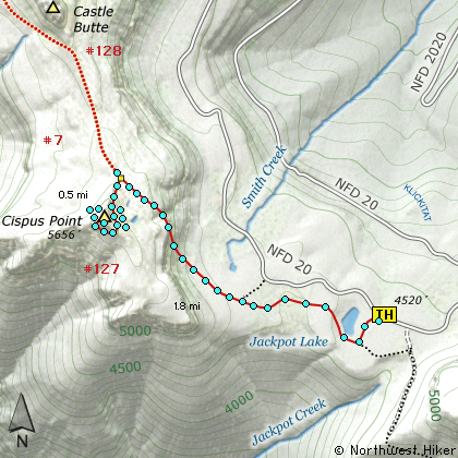 The trail has little use past Jackpot Lake and can be