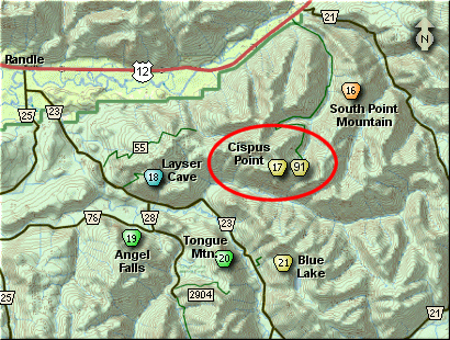 is the approach to Jackpot Lake as well as Cispus Point.