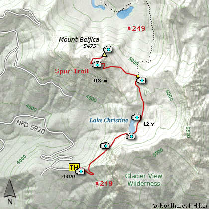 In about a mile you break over a saddle and come upon Lake Christine.