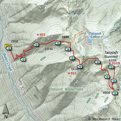 to Tatoosh Lakes the trail parallels the ridge line for the next 2 miles.