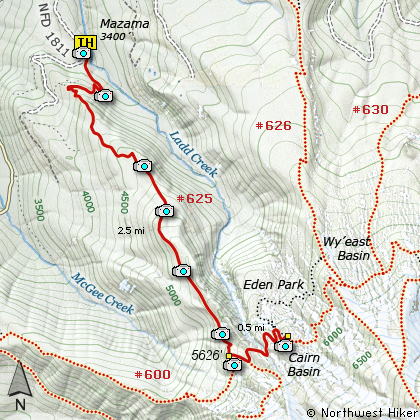 Map of the Mazama Trail, Cathedral Ridge, Cairn Basin Hike