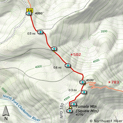 to a saddle where an alternate trail to Tumala Mtn intersects this trail.