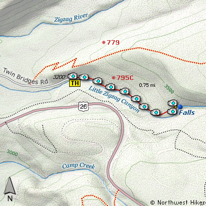 Map of the Little Zigzag Falls Hike